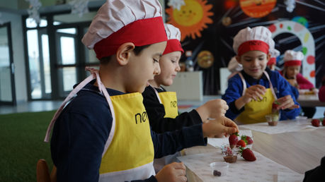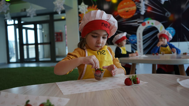 Anaokulu ve İlkokul gruplarına yönelik olan bu etkinliğimizde çocukların keyifli vakit geçirmeleri için herşeyi düşündük ve tasarladık. İsimlerinin baş harflerini, hayvan figürleri veya kalp konseptlerimizden biri seçiliyor. Çocuklar bu kalıpları kendi elleriyle hazırlıyor. Daha sonrasında çileklerini çikolataya batırıp afiyetle yiyor. Hazırlanan çikolatalar ise evlere minik şeflerin birer hediyesi olarak gidiyor.